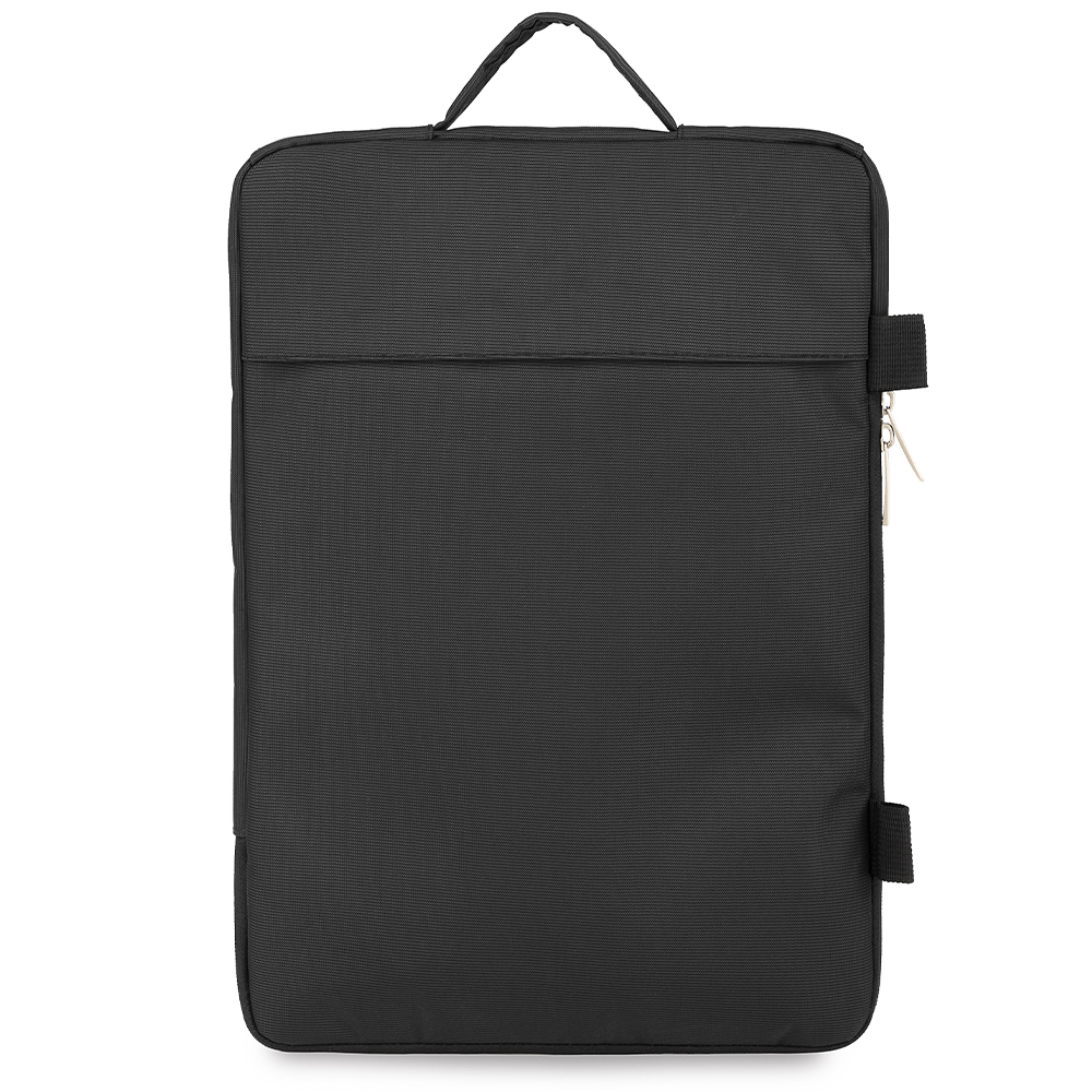 Çantanın dış kısmı su geçirmeyen ve kanserojen madde içermeyen siyah imperteks kumaştan, iç astar kısmı ise kırmızı kadife kumaştan üretilmiştir. Çanta gövdeleri 8 mm kalınlığında köpük ile desteklenmiştir. Tip 8 kalitesinde fermuar ve metal elcik kullanılmıştır. Çanta fermuarlı 1 ana bölme ve 1 arka cepten oluşmaktadır. Çanta yatay ve dikey kullanıma göre tasarlanmıştır, omuz askı kayışını yatay ve dikey kullanıma göre değiştirebilirsiniz. Ebat Çanta ebadı 40x28x4 cm büyüklüğündedir. Özel renk ve özel ebat çanta üretmek mümkündür.